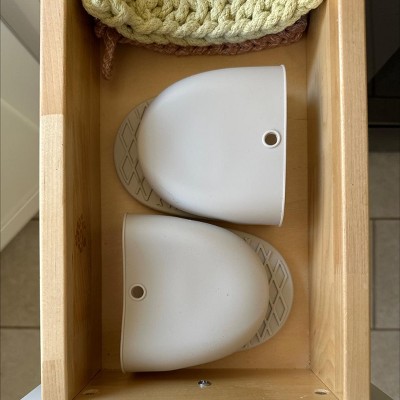 Compact but very effective. Easy to slip on and off, heat-resistant, and perfect for grabbing hot dishes quickly. Love the simple design too.