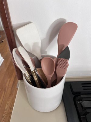 This Figment Silicone Spatula Set has a high heat resistance and is safe to use on all cookware types. The two sizes are great for cooking large and small meals. A beautiful color to match with kitchen towels and other utensils!