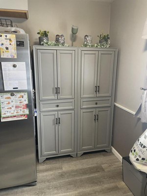 2pc Tara Pantry Set Distressed Gray - Crosley: Freestanding Storage, Adjustable Shelves