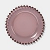 Bring elegant charm to your tablescape with these 2-Pack Glass Beaded Appetizer Plates from Threshold™. Made of glass, these appetizer plates are designed in a pink and feature a beaded design on the rim for a timeless look. You can use these 6.06-inch plates to serve salads, pastas and other dishes for everyday meals or festive dining.