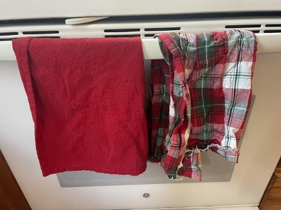 I love how festive these towels are, and was so excited to see these. I got them delivered, so I did not see them in-person prior to purchase, but figured the size was decent and the fabric content is good, so went ahead with it. I’ve washed and used these a few times now, so here is my feedback: The colors are as vibrant in person as they appear in the photos- yay! And they haven’t dulled yet (I do wash cold and tumble dry low). They are functional. They absorb well enough and are a good size. Some downsides: They are incredibly wrinkly, even folded straight out of the dryer. They would need to be ironed to look “presentable”. The plaid one is much worse in this manner than the solid red. Refer to photo. Because they’re so wrinkled, you don’t really see the full size of the plaid one- you’d have to completely smooth/iron those edges. They’re not the best towels, they feel a little cheap and are definitely not my favorite, but I love the color way, so I’m not too bothered by it. Wouldn’t purchase again, though.