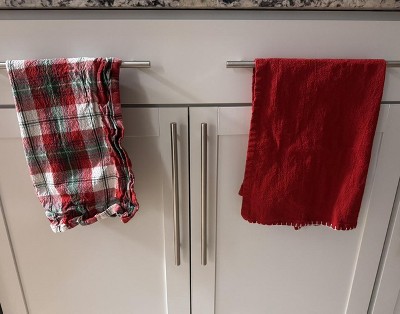 Bring a touch of festive spirit to your kitchen with these 2-Pack Christmas Kitchen Towels from Threshold™. This pack includes two kitchen towels — one featuring a green plaid design and another one in solid green — both adorned with white stitched detailing on the border to add a bit of jolly to your space. Made of 100% cotton, these towels feel soft to the touch and make drying dishes and kitchen cleanup a breeze. Plus, they're machine washable for easy upkeep.