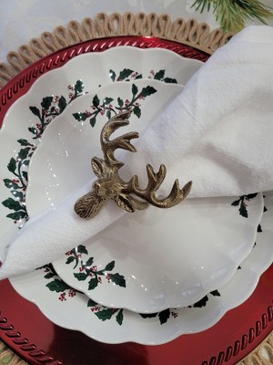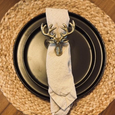 Add an elegant touch to your dining table with these 2-Pack Deer Napkin Rings from Threshold™. This set includes two napkin rings featuring a deer face with antlers in a gold-tone hue, making them perfect for Christmas dinners, family gatherings and other special occasions. Pair them with your choice of napkins and cutlery to delight your family and friends.