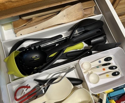 My husband finally let me organize the junk drawer after discovering these trays. It feels so nice to not have to rummage through a giant pile of the most random things to look for something I need. I like that these come in different sizes—I was able to find a nice combination with the large, medium, and long trays that fit in our drawer nicely. These are lightweight and easy to clean. I can see myself using these in the bathroom as well to organize makeup and smaller personal care items.