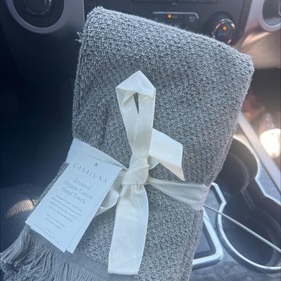 This 2-Pack of Organic Texture Hand Towel Set from Casaluna™ adds a chic and comfy touch to your bathroom. This set contains two hand towels crafted from 100% organic cotton for a soft and plush feel. Featuring thread fringes on the sides, these cotton hand towels are designed in a textured pattern that provides gentle exfoliation. Plus, these organic hand towels comes with a loop to hang them easily on hooks, door hangers and more.