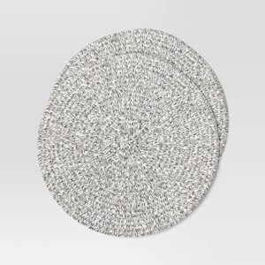 Redefine your table settings with this 2-Pack Paper Chargers from Threshold™. Made from a paper and polyester blend, these decorative chargers offer a place for cutlery, plates and bowls while helping protect your table surface from heat, scratches, spills or messes. This pack includes two round chargers, each featuring a subtle ridged design in a heathered black hue for an artisanal look.