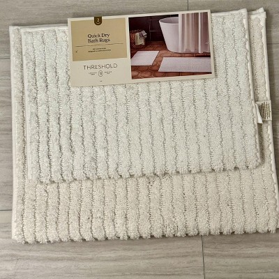 Bring a touch of luxurious comfort to your bath space with this 2-Piece Quick Dry Bath Rug Set from Threshold™. Boasting a woven construction with tufted pattern, these bath rugs feel soft underfoot, providing your feet comfort as you step out of the bath. Plus, thanks to its timeless design, this rectangular bath mat will fit right in with any bath aesthetic, giving you a comfy spot to dry off while getting ready for your day.