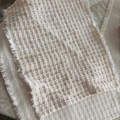 Beautiful mats but they aren’t machine washable like the care instructions say. I washed two that got dirty and they shrank even though I hung them up to dry. Will be spot cleaning from now on. The pictures show the size difference between an unwashed and washed one.
