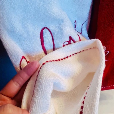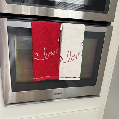 [This review was collected as part of a promotion.] I purchased this adorable two pack Valentine’s Day themed hand towel set to display in my kitchen. The set comes with 2 towels, one red with white embroidered lettering and one white with red embroidered letting; both saying the word love. They are pretty and a nice size, but the embroidery didn’t look stitched well.