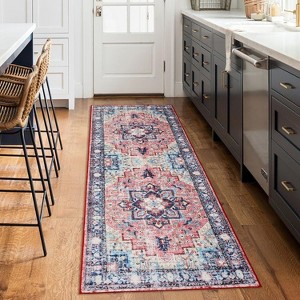 Product Name: 2x6 Washable Floral Print Rug Easy Clean Low-Pile Non-Shedding Carpet with Non-Slip Backing, Dining Room, Home Office, Bedroom Entryway Light Red