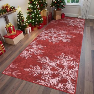 - Festive Design for the Holidays: Featuring classic Xmas snowflakes print in vibrant holiday rug, this Christmas rug creates a festive atmosphere in any space. Perfect as a Christmas area rug, it's an ideal decorative accent rug for bedrooms, living rooms, kitchens, nurseries, or entryways, instantly brightening your floor decor with timeless holiday charm