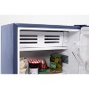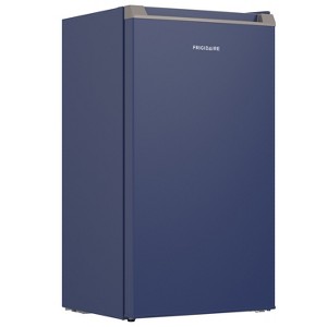 The 3.2-Cu. Ft. Compact Fridge from Frigidaire® offers generous fresh food storage with a slide-out shelf for easy cleanup. It includes a freezer compartment with an ice cube tray, and the reversible door allows for left- or right-handed use. The adjustable temperature control ensures customized cooling, while the fridge accommodates 2-L and tall bottles. The modern finish provides a sleek appearance, and a convenient dairy rack is located in the door for additional storage._