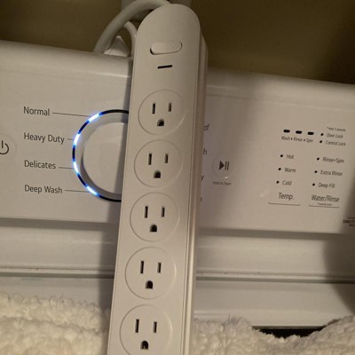 love this power strip! I can actually use all six outlets, others have the plugs so close together that you can only use half of the outlets. simple on and off switch with a blue light indicator. I have my smart plugs on this with room to spare.