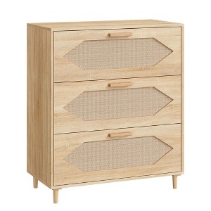 - 【Chic and Functional Design】Combining a timeless natural wood look with trendy rattan detailing, this 3-drawer chest brings warmth and character to any room. Its minimalist aesthetic blends with contemporary, bohemian, or farmhouse decor, making it a standout piece that elevates home organization without sacrificing style or floor space.
