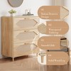 The generous three-drawer layout provides ample space for organizing clothes, blankets, linens, and small accessories such as socks and scarves. Its large capacity makes this rattan dresser ideal for bedrooms, entryways, or hallways, eliminating clutter and keeping essentials within easy reach for a neat and inviting environmThis wood rattan dresser doubles as a nightstand or accent storage cabinet, enhancing your living room, bedroom, entryway, or even home office with its stylish design. The natural wood finish and airy rattan fronts allow it to complement both modern and rustic interiors while offering a practical solution for organizing daily essentials.