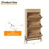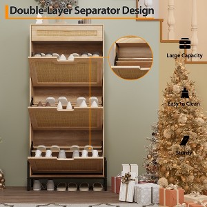- 4.Aesthetic Design: The stylish flip drawer doors offer quick access to your shoes, while the slim shoe cabinet fits easily into narrow spaces in foyers and entryways. Adorned with natural rattan, the door panels add elegance to your home decor