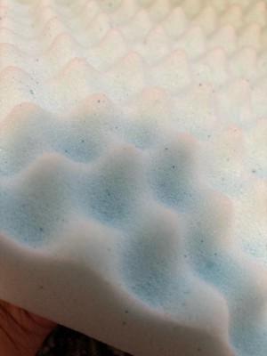 After unboxing the item was curled up & had an odor. Thought I'd allow it to relax & breathe on the deck for a while. Came back to find the crisp, clean, brand new pad had turned BROWN from a few minutes in the sunlight! Super disappointed! ~~~~~ We've owned it for years now. Still a comfortable thickness but it does stretch and will bunch up near our hips requiring occassional repositioning. Undecided about the "cooling" aspect. Still often wake fully soaked but not sure it's the fault of the topper. It's definitely better than the mattress alone but not sure its the best topper.