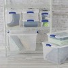 - Step up to versatile 7 Quart Clear Latching Storage Bin and get organized! The clear base and lid let you easily view and locate stored contents from any angle.