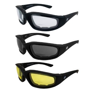 3 Pairs of Birdz Eyewear Oriole Bifocal Safety Motorcycle Sunglasses with Clear, Smoke, Yellow Lenses