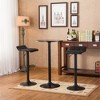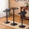 Adjustable Height Functionality The stools feature a sturdy black base with a lift mechanism that includes a built-in 360-degree swivel function and footrest, allowing seamless adjustment from counter to bar heights. The bar table complements this with an adjustable pneumatic gas-lift mechanism, enabling table height adjustments from 26" to 36".
