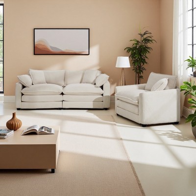 3-Piece Corduroy Sofa Set with 2 Singles + 2-Seater