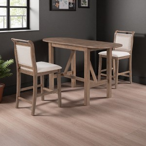 - SMALL SPACES SOLUTION: Perfect for small studio apartments or small dining rooms. The drop leaf top adjusts from 35.4"x23.8" to 59.8"x23.8"—expand it to accommodate more people for meals and drinks. The rubberwood top also works as a kitchen island. Place the set against the wall to avoid a crowded look.