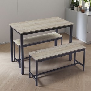 3-Piece Dining Set with Rectangular Table and 2 Benches