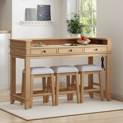 3-Piece Dining Set with Rectangular Table, Storage Shelves and 2 Stools