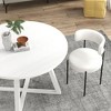 - COMFORTABLE BOUCLE CHAIRS: Boasts a contemporary look with clean lines and rounded silhouettes. Textured boucle fabric adds visual and tactile appeal, while curved semi-wrapped backrests (breathable) and high-density foam filling ensure comfort. Sturdy iron legs with floor protectors prevent scratches and keep chairs stable.