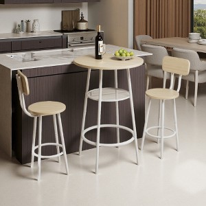 Chic & Modern Aesthetic Featuring a wood grain finish and a black coated metal frame, the table and bar stools exude a stylish and high-end vibe. This set will add a touch of sophistication to any living space, complementing modern decor with ease.