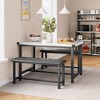 3 Piece Dining Table Set for 4, 44" Kitchen Table with 2 Benches, Wooden Rectangular Kitchen Table Set, Space Saving Breakfast Table, White