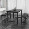 3-Piece Dining Table Set for 4 People, 44" Space Saving Kitchen Table with 2 Benches, Industrial Rectangular Dining Room Table Chairs Set