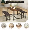 3-Piece Dining Table Set with Wood Table, 2 Upholstered Benches, Space-Saving Metal Frame Kitchen Table Set