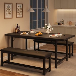 3-Piece Extendable Dining Table Set for 4-6 with 2 Upholstered Benches, Large Rectangle Kitchen Table, Space-Saving Design