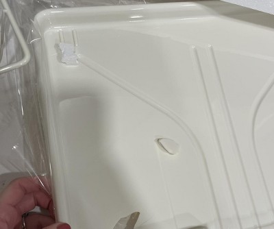 Product was shipped in a cardboard box with no padding in between. The drain tray was made of flimsy plastic and cracked during shipping. Disappointed because beige color is hard to find.