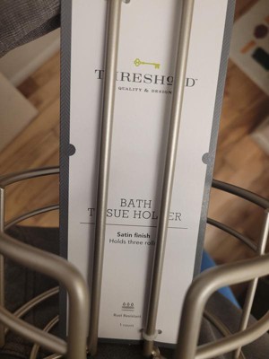 I really needed two of these but opted for one. The packaging is not the easiest to get off. It also states that it holds the rolls, but I got five on mine. I guess it depends on the brand of the toilet paper. I like the satin finish, as it completes the bathroom look. I'm going to have to get another one for the other bathroom.