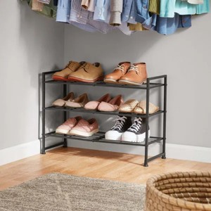- Perfect for apartments, dorm rooms, or family homes, this shoe rack requires minimal assembly and can be set up in minutes. Whether you're storing sneakers, flats, or sandals, 3-Tier Shoe Rack helps declutter your space and keep your shoes organized.
