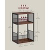 Organize your music collection with this versatile 3-tier record player stand, designed to store up to 100 vinyl albums while providing a stable surface for your turntable. The stand features two spacious lower shelves with removable U-shaped dividers for customizable storage, all protected by dense mesh side panels to keep items secure. Crafted from durable particleboard and steel in a Natural Walnut and black finish, it combines industrial style with practical functionality. Easy to assemble in just a few steps, this multi-purpose stand serves equally well as a side table in your living room, bedroom, or study, keeping your music and essentials neatly organized. Color: Natural Walnut Product Size: 11.8"D x 16.9"W x 27.1"H (30 x 43 x 69 cm) Material: Particleboard, Steel Product Weight: 13.4 lb (6.1 kg) Max. Static Load Capacity of the Top: 44 lb (20 kg) Max. Static Load Capacity of the Middle Shelf: 22 lb (10 kg) Max. Static Load Capacity of the Bottom Shelf: 44 lb (20 kg)
