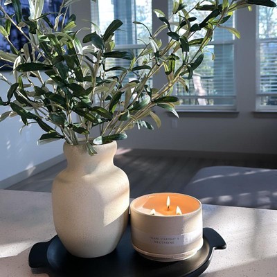 Light up your space with the 3-Wick 14oz Matte Textured Ceramic Wooden Wick Candle Ivory/Island Starfruit and Nectarine - Threshold™. The crackling wooden wick brings coziness, and the fresh blend of fruit smells amazing. The chic matte ceramic container adds a touch of style to any room. Enjoy the soothing glow and delightful scent of this textured Ceramic Wooden Wick Candle.