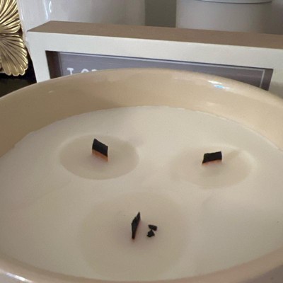 I like the scent but it’s not that strong for a three wick. There was a lot of wax left but the wood wicks will no longer burn. I wanted to reuse the holder but there’s glue residue that won’t remove. I wouldn’t purchase at full price again.