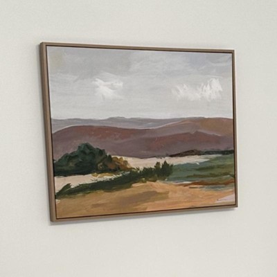 Give your space a simple yet meaningful edit with the 30" x 24" Landscape Framed Canvas Natural - Threshold™. It depicts a colorful landscape to give subtle and stylish upgrade to your walls. The 30" x 24" Landscape Framed Canvas Natural - Threshold™ is perfect to give your home or office decor a touch of nature's grace.