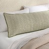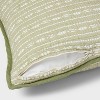 A: The pillow cover is reversible and features a green hue with a white print for stylish decor.
