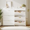 - Sturdy & Safe Construction – Crafted with premium PB wood and supported by metal legs, this fluted shoe cabinet with drawers boasts excellent load-bearing capacity and stability. An anti-tip device enhances safety, while rounded corner metal handles protect kids from scratches and injuries during use