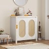31 Inch Small Sideboard Buffet Cabinet with Glass Doors Adjustable Shelf and Black Finish Natural