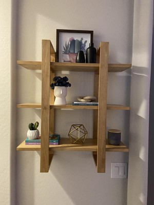 I am so glad I stumbled upon these after eying a much more expensive version by another brand. Haven't hung these up yet, but the wood is good quality and a pictured, and the shelves were easy to put together and seem very sturdy with multiple options for arranging. I'm excited for the statement piece this will make in my living room!