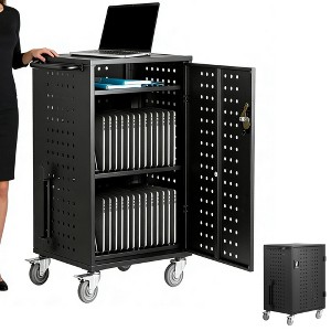 - 【Rolling Design】The charging carts is equipped with 4 universal wheels and a handle, the tablet charging cart can be moved easily and quickly even fully loaded, and it is quiet enough when moving. 2 lockable wheels can also keep the cart in place.