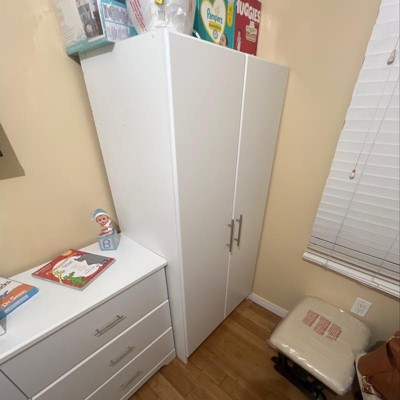 Great wardrobe, fits a lot of items with space on top for more things since its not too tall (I'm 5'4") Only thing is the manufacturer did not label the pieces so putting it together took longer than it should