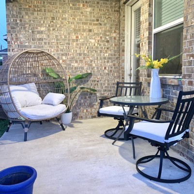 Quality patio table with tempered glass top! Perfect size for a smaller patio. Three chairs fit well with it!