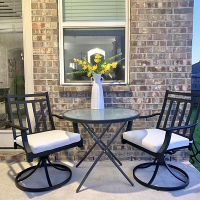 This table fit perfectly on my small patio and paired well with the Fairmont swivel chairs.
