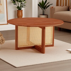 33.5" Solid Wood Red Rattan Coffee Table